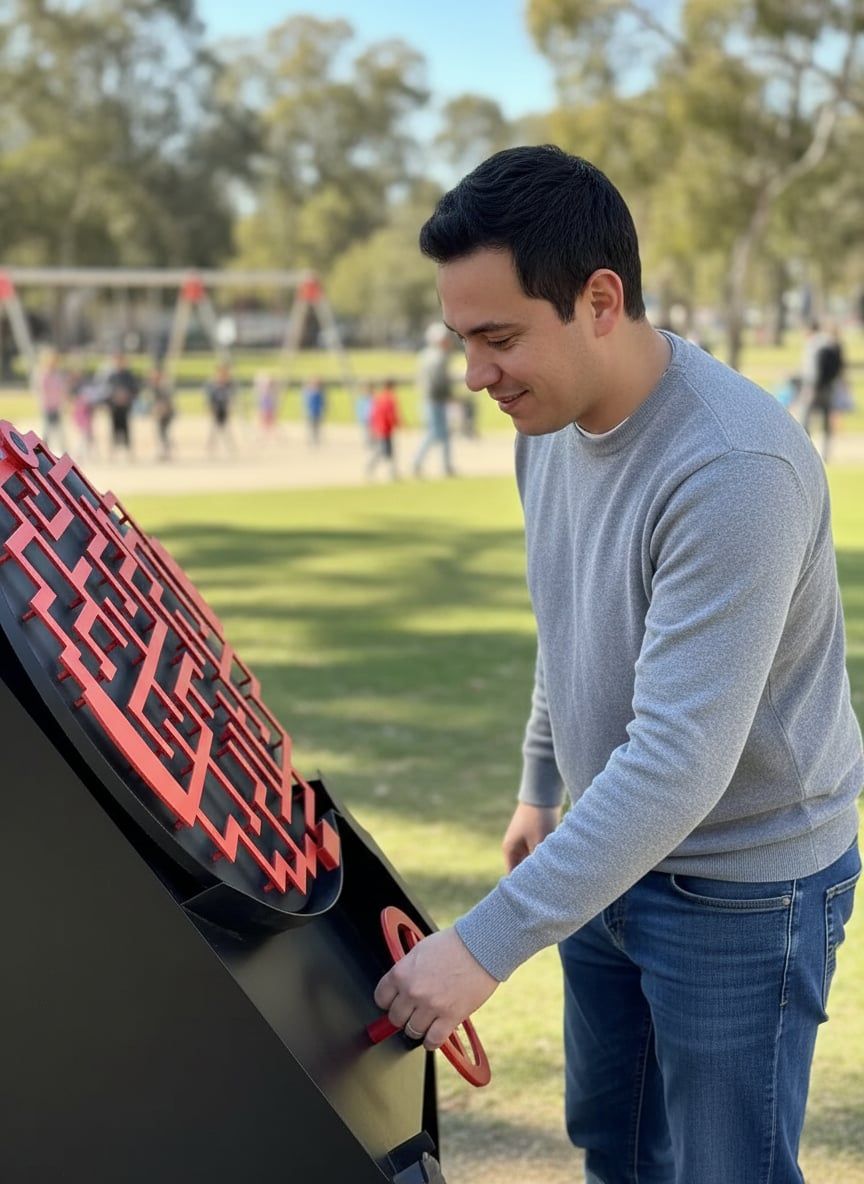 Egy kormány segítségével kell végig vezetni a golyót a labirintuson. 10+ éves kortól ajánljuk.